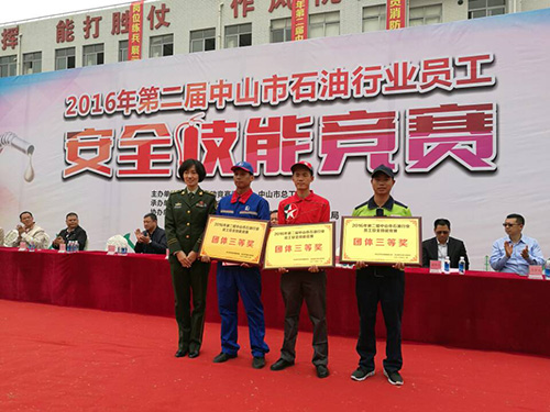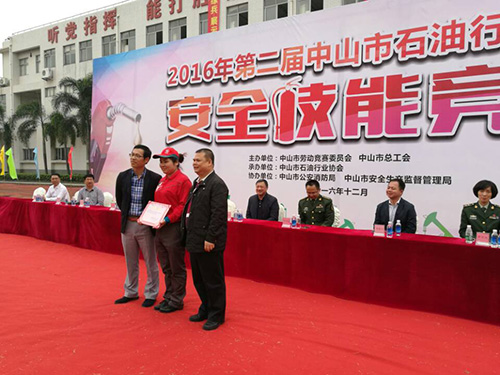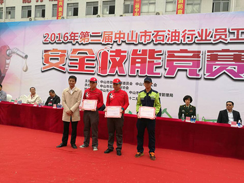 2016年12月13日,我司組團(tuán)由總經(jīng)理親自帶隊(duì)參加了2016年第二屆中山市石油行業(yè)員工安全技能競賽,取得了優(yōu)異的成績。取得的獎項(xiàng)有團(tuán)體賽三等獎、女子石棉氈一等獎和二等獎、女子滅火器滅火一等獎、男子石棉氈二等獎和男子滅火器滅火三等獎。